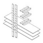 Komplettregalsystem für Lagercontainer und Rollladenboxen, bestehend aus 2 verzinkten Regalsäulen, 6 Kragarmen und 3 Holz-Regalböden B 2.000 mm x T 500 mm mit einer Tragfähigkeit von 120 kg pro Boden bei gleichmäßig verteilter Last. Für Ordnung in Ihren Lagerräumen. Einfache Montage ohne Werkzeuge durch Einstecken oder Einhängen der Bauteile.